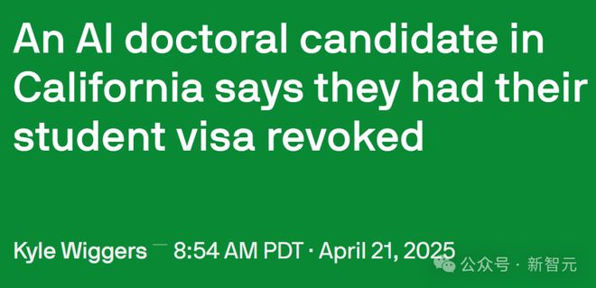 就在刚刚,加州一位 AI 博士的学生签证被吊销了。