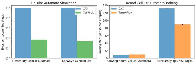 CAX 构建于 JAX/Flax 生态系统之上,拥有极高的运行速度和可扩展性。