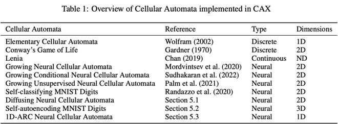 这种协同作用,让 CAX 能够借助机器学习领域的最新进展,用于加速元胞自动机研究。