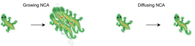 NCA 需要通过不断应用自身的规则,将输入图案逐步转化为目标图案。