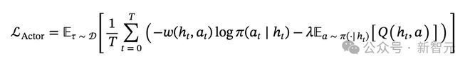 采用的解决方案是 actor-critic 架构,其中 critic 的训练方式是使用标准的一步时序差分(temporal difference, TD)更新来输出Q值。至于 actor 的损失函数,其一般形式如下: