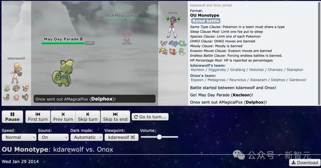 可以在 Pokémon Showdown 上观看各个模型的游戏重播。