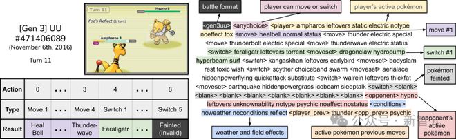 下图展示了数据集中一场回放中的示例。观测只包含对手当前上场的宝可梦。
