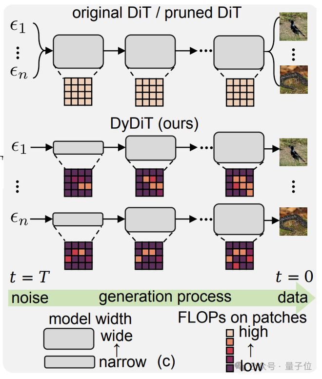达摩院(湖畔实验室)、新加坡国立大学、清华大学等联合研究团队在论文《Dynamic Diffusion Transformer》提出了动态架构 DyDiT,能够根据时间步长和空间区域自适应调整计算分配,有效缓解视觉生成任务中的算力消耗问题。