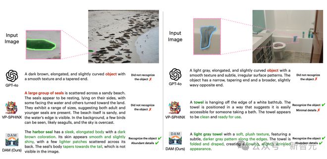 总而言之,DAM 的优势主要有三大点:更详细、更准确;更少幻觉;多场景适用。