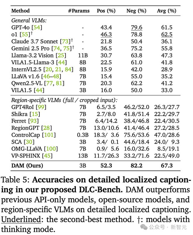在研究人员提出的 DLC-Bench 测试中,DAM 在详细局部描述方面优于之前的仅 API 模型、开源模型和特定区域 VLM。