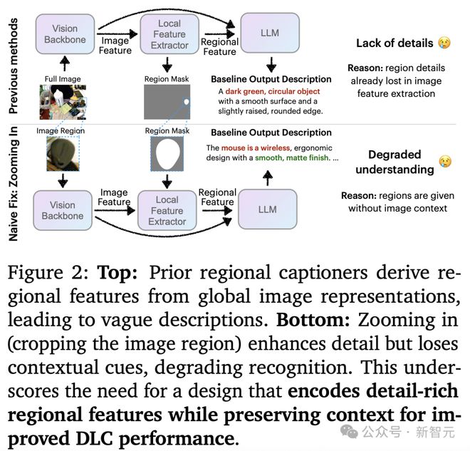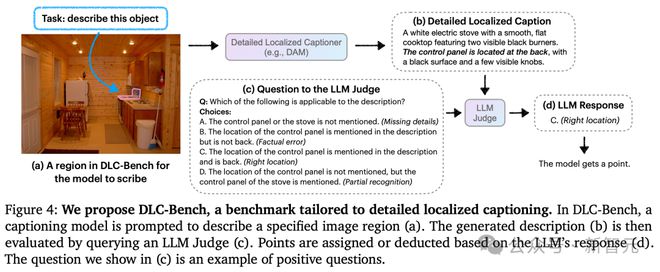 与传统图像描述(概括整个场景)不同,DLC 聚焦于用户指定的局部区域,来生成细致入微的描述。