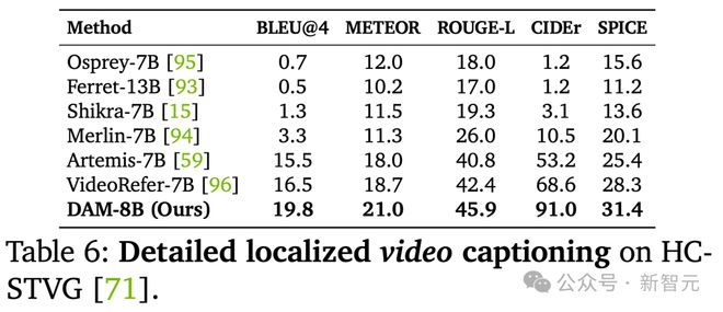 下表 6 所示,DAM 在详细局部视频字幕方面刷新 SOTA。