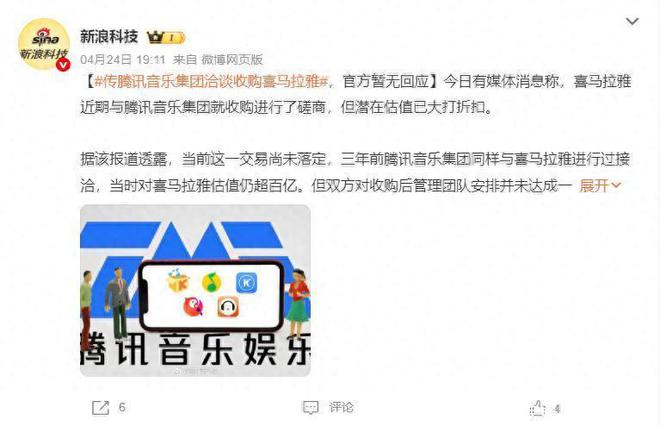 4 月 25 日,腾讯音乐集团和喜马拉雅方面对此事进行了回应。腾讯音乐集团方面告诉"每日经济新闻",类似的说法早先就有传播。喜马拉雅方面则称,尚不知晓出售一事。双方既没有明确承认,也没有否认,就这件事,还要让子弹再飞一会。