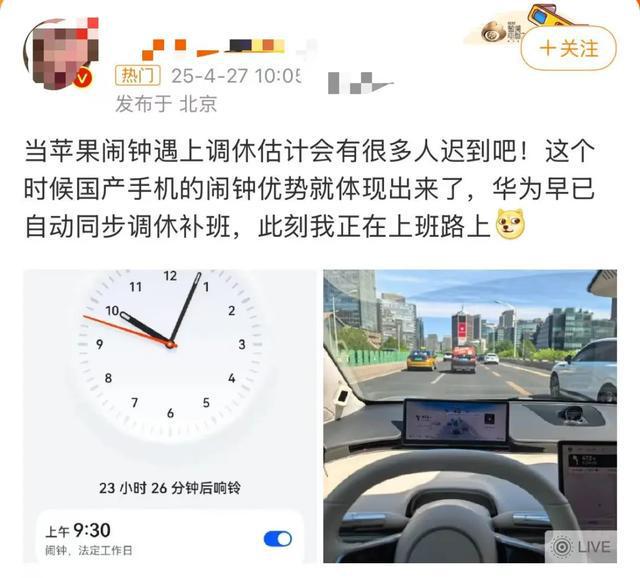 今天(4 月 27 日),微博话题#调休##当苹果闹钟遇到调休#登上热搜榜,引发网友热议。