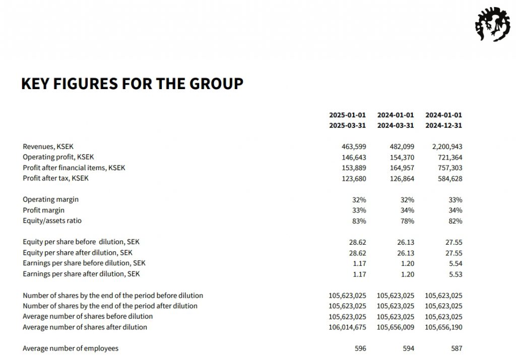 GameLook 报道/海外 SLG 大厂 Paradox Interactive(以下简称P社)4 月 24 日发布的财报显示,该公司 2025Q1 收入为 4.6 亿瑞典克朗(约合人民币 3.5 亿元),同比降低4%;营业利润 1.47 亿瑞典克朗(约合人民币 1.1 亿元),同比下降5%;扣除财务项目后利润 1.54 亿瑞典克朗,税后利润 1.24 亿瑞典克朗,同比几乎持平。