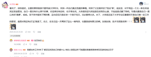 “我想说的是,当下这个世界真的非常非常卷,如果你从事的工作不是你喜欢的,那你是卷不过别人的,因为就是有一群变态,他可以和你一样努力,但同时特别热爱,每天被虐都会觉得开心,这种人你是竞争不过的。”