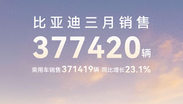 比亚迪 3 月销售 377420 辆,乘用车及皮卡海外销售 72407 辆。
