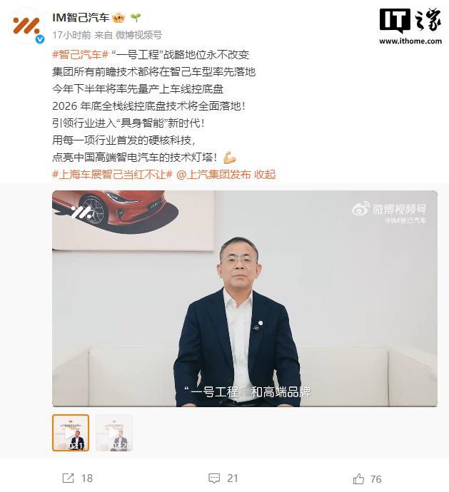 IT 之家 4 月 28 日消息,智己汽车昨日发布了一段上汽集团董事长王晓秋的视频,表示智己汽车“一号工程”战略地位永不改变。