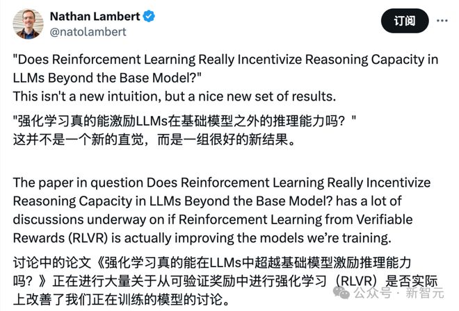 「也许关于强化学习是否激励了推理能力并不是一个直觉,而是一组有依据的新成果」。