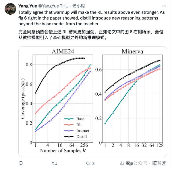 这从另一个方面说明,强化学习依然有效,只不过 RL 和蒸馏有本质的区别。