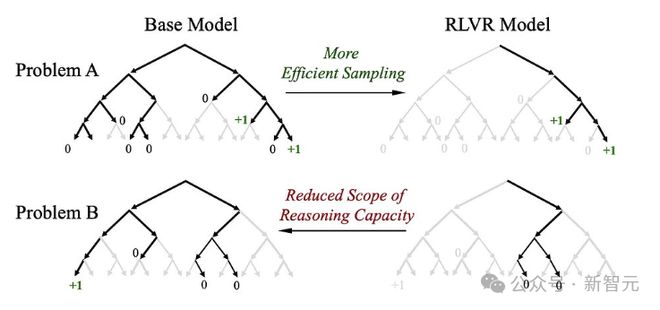 RLVR 只是提高了采样效率,而不是「推理能力」,但同时无意中也缩小了解空间。