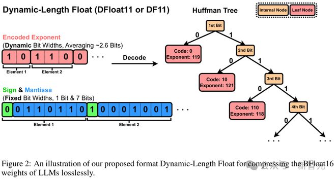为了解决 LLM 权重在 BFloat16 表示中存在的巨大信息冗余问题,团队提出了一种利用熵编码来对浮点参数进行编码的无损压缩框架——DFloat。