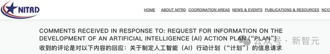 4 月 25 日,美国网络与信息技术研究与发展(NITRD)公开了美国各界就「AI 行动计划」提交的全部书面意见。