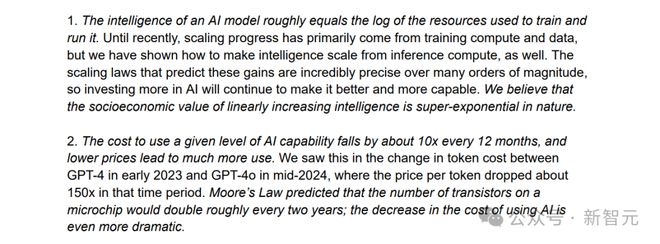 2. 使用特定水平AI能力的成本大约每 12 个月下降 10 倍,且成本下降会促使使用量激增。