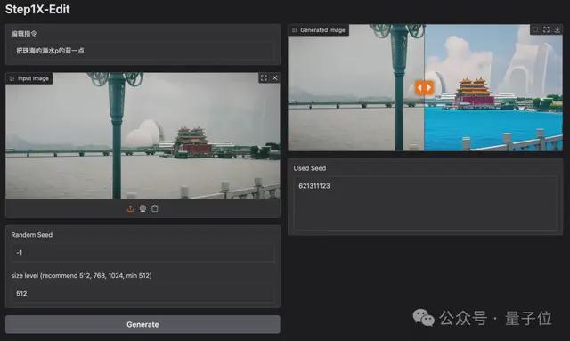 它展示了自己精准的控制能力,定向分辨出“海”在图片中占据哪些部分,也如提示词要求的那样让海水变蓝。