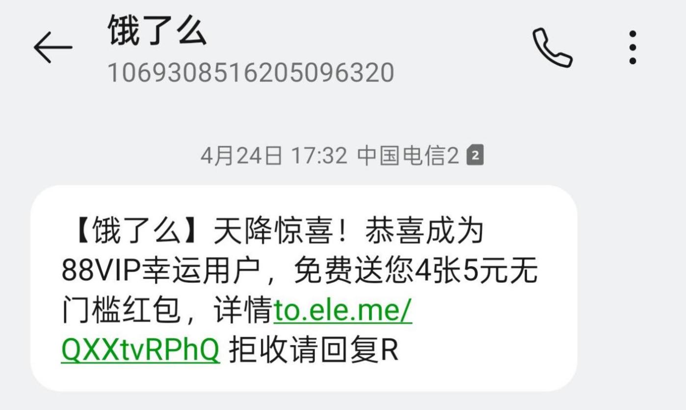 消费者晒出饿了么免费发放的红包