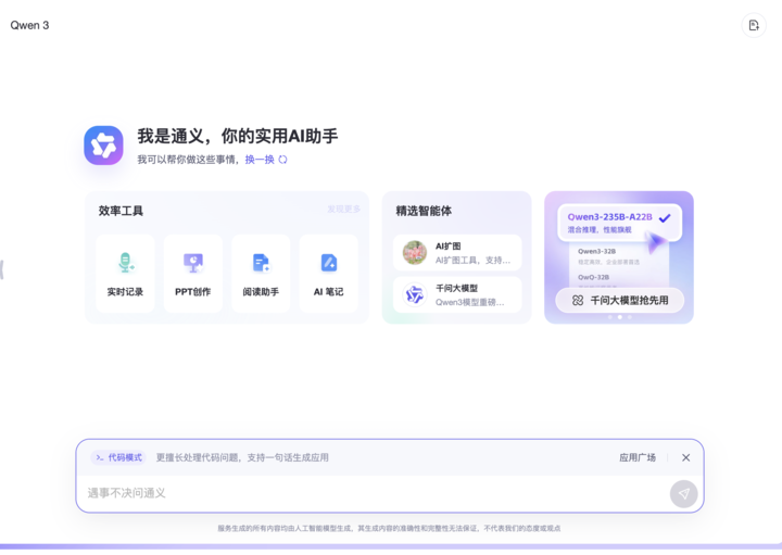 需要特别说明的是,目前通义 APP 默认搭载的是 Qwen3-235B-A22B 模型。