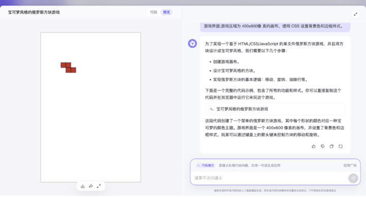 一句话编程,我用通义做了一个宝可梦风的俄罗斯方块游戏