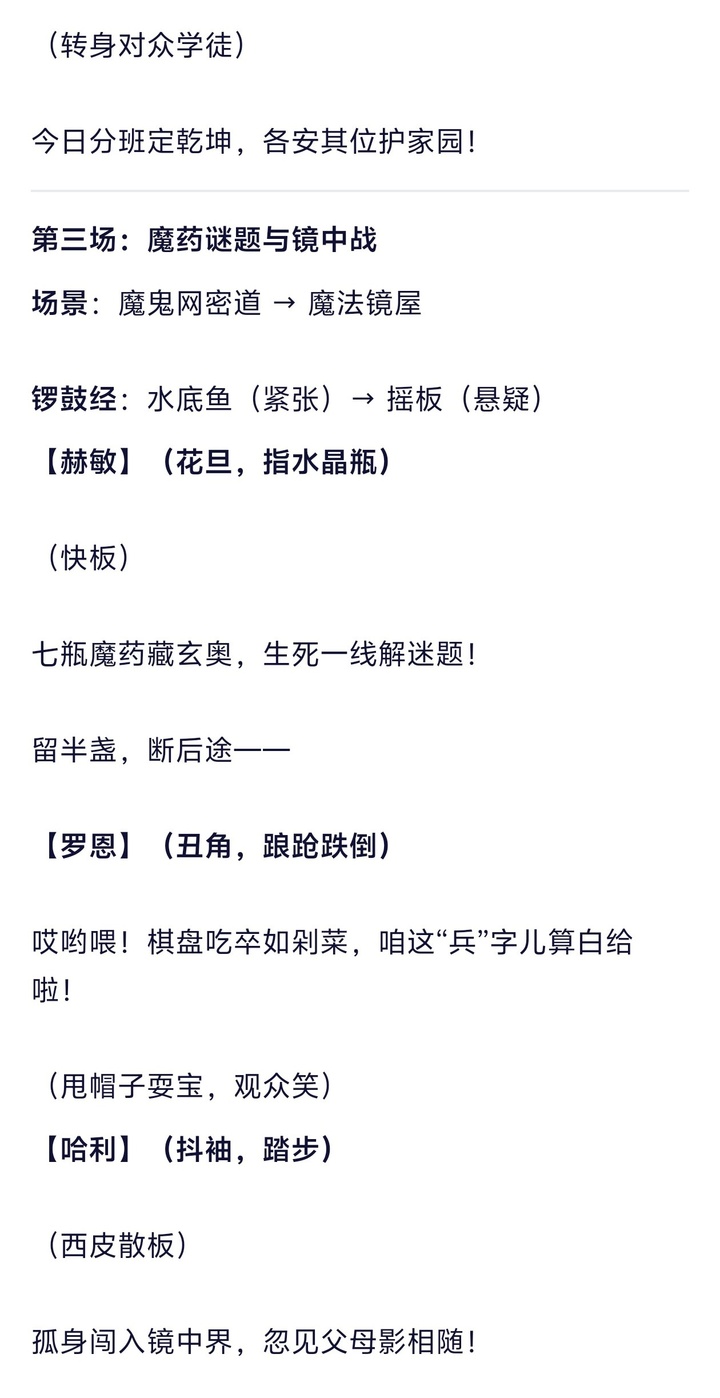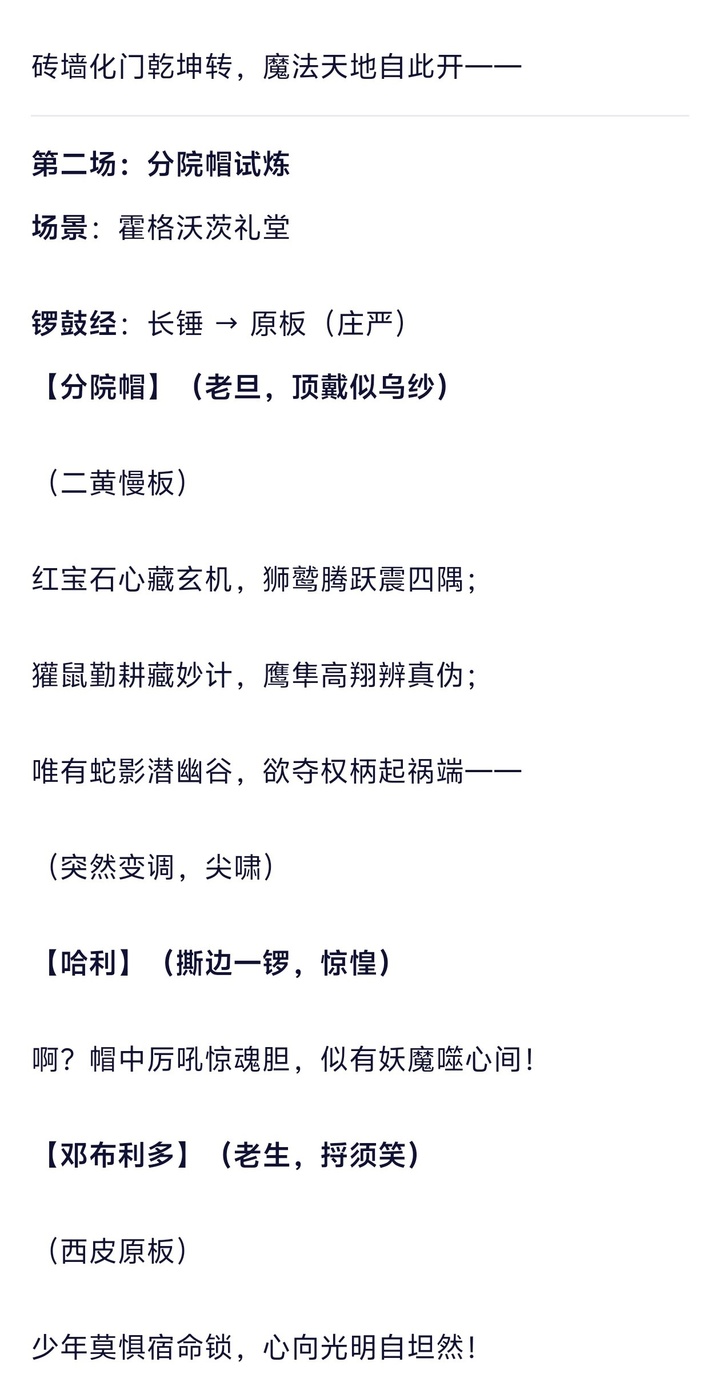 而唱词则采用对仗工整、押韵自然的古典文风,既符合京剧语言,又不失哈利波特故事的奇幻感。