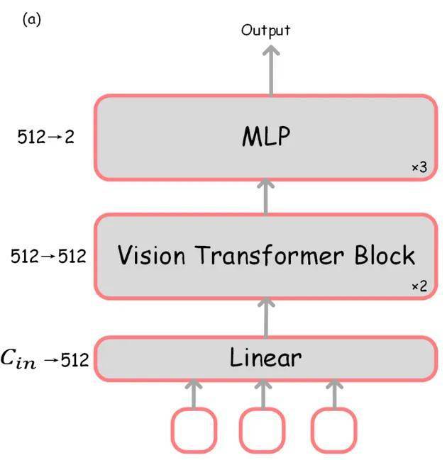 在预填充阶段,我们对输入的视觉 token 进行稀疏化操作。如图 2 左侧部分所示,我们引入一个可训练的轻量化的图像预测器(Image Predictor),来判断应当丢弃哪些视觉 token。该图像预测器的结构如下图: