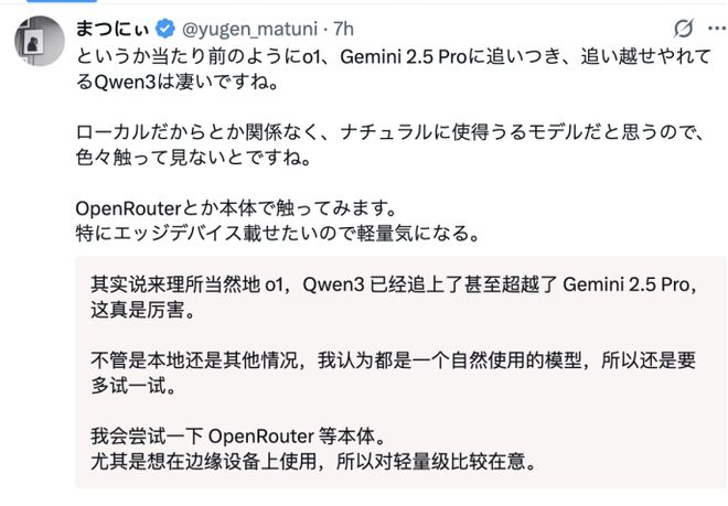 并且,Qwen3 为了在国际应用端扩展影响力,已经能够支持 119 种语言和方言。外网的各国网友对其的评价都很不错,横向对比的话,Qwen3 已经追上或者超越了 OpenAI o1、谷歌 Gemini 2.5 Pro。