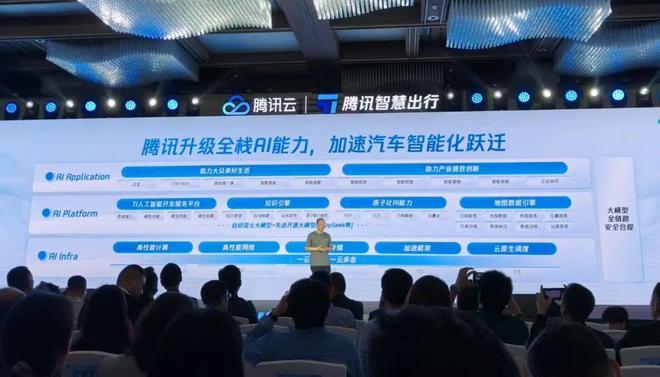 在这场聚焦 AI 技术与汽车产业深度融合大会上,腾讯宣布面向汽车行业全面升级全栈 AI 能力,涵盖 AI 基础设施、开发平台及场景化应用三大维度,并发布座舱端侧大模型等创新产品。