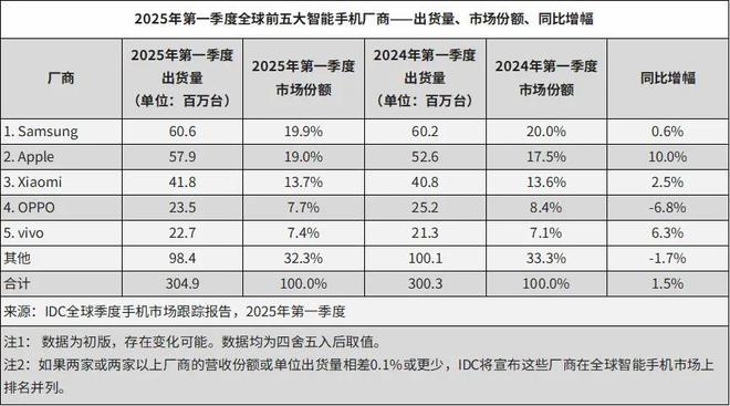 最近,2025 年第一季度智能手机的出货量、销量排名陆续放榜。