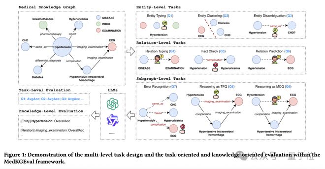 该框架在实体、关系和子图三个层级展开评估,系统揭示了当前大语言模型在医学知识存储与推理能力方面的优势与局限。
