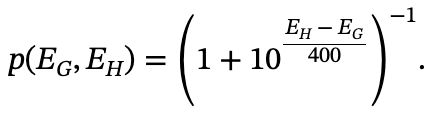 Elo 分数为 EG 的 Guard 对 Elo 分数为 EH 的 Houdini 的预期胜率由标准 Elo 公式给出。