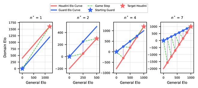 因此,在较低的智能水平差距下,Guard 的领域 Elo 比 Houdini 大,导致监督步骤数量增加的模式与其他游戏类似;