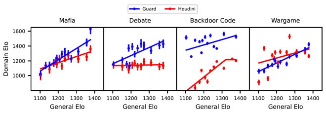 从黑手党的 Elo 曲线中可以看出,Guard 和 Houdini 都有智力收益,但 Guard 的曲线斜率大于 Houdini。