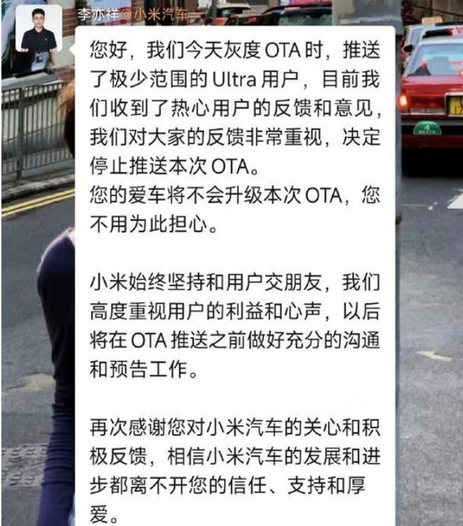 SU7 Ultra OTA 的一推一撤,即便不是小米精心策划自导自演的车主“群体性”事件;也起码完全不符合小米一贯严谨的工作作风~他们为什么出这种“昏招”?因为主管部门施压限期整改?真的不知道。