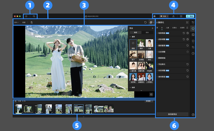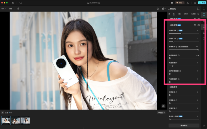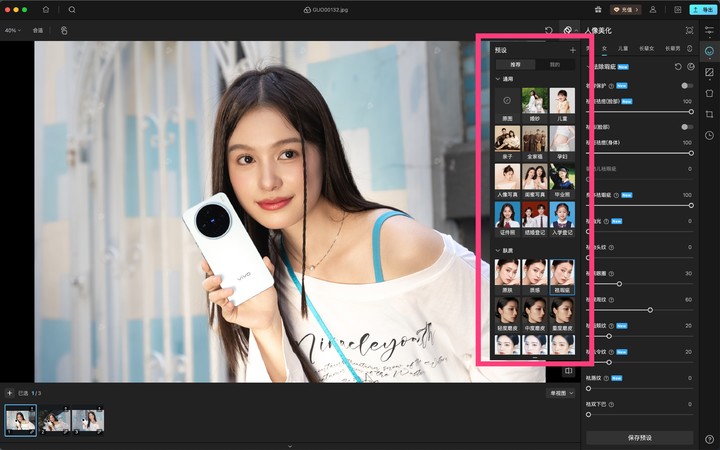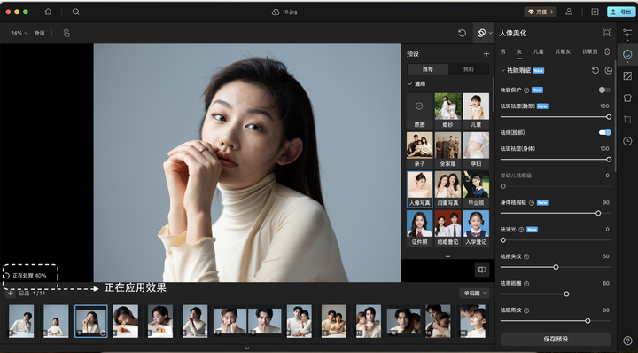 AI 智能识别精修人像,智能「预设」一键批量修图
