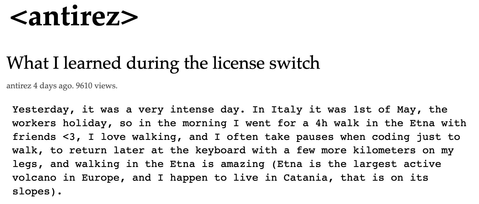 然后下午 6 点,我回到了家,发布了关于从 AGPL 许可证切换的博客文章,并开始查看评论、反馈、私信,过程中我学到了一些东西。