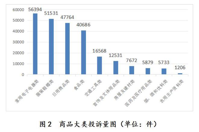 根据 2025 年一季度内商品大类投诉数据,家用电子电器类、服装鞋帽类、日用商品类、食品类、交通工具类投诉量居前五位。与 2024 年一季度相比,服装鞋帽类、日用商品类投诉量比重上升;农用生产资料类投诉量比重下降。