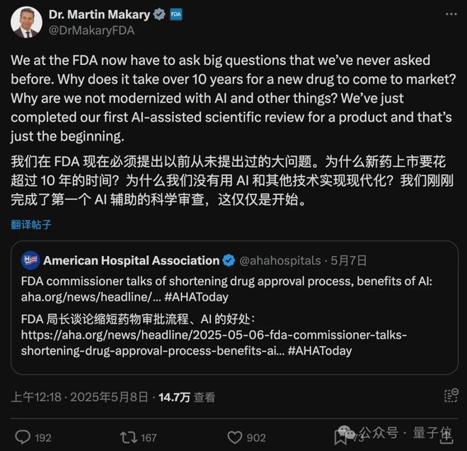至于为什么要做这么个事,FDA 局长 Marty Makary 在X上发表了他的看法: