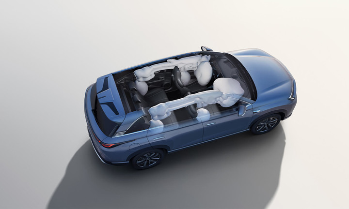 新车底盘采用的是前麦弗逊后多连杆的独立悬架,并且全系标配了云辇-C 智能阻尼车身控制系统,结构上则采用了高强度车身结构和 CTB 电池车身一体化技术,并且标配了 10 个安全气囊。
