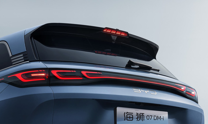 车尾配备了贯穿式尾灯,并采用了比亚迪最新的中国结光源,同时运用了双拼样式的车顶扰流板,中间位置为高位刹车灯。