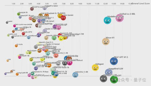 截至目前,排行榜收录了 100 多个多模态模型的成绩,并根据 General-Level 标准揭示了它们在通才能力上的座次高低。