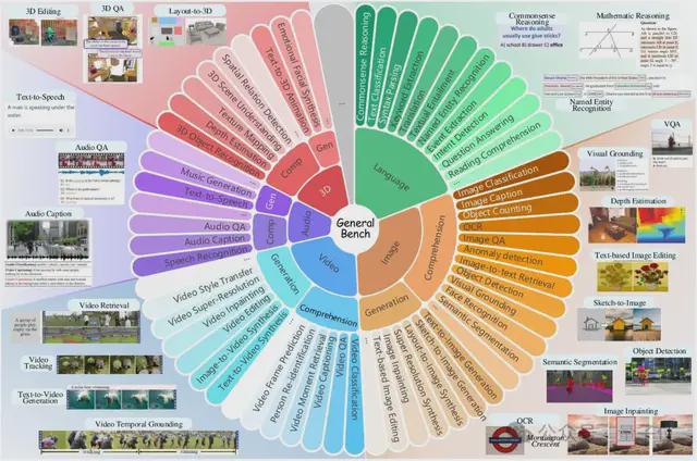 General-Bench 被誉为当前规模最大、范畴最广、任务类型最全面的多模态通才 AI 评测基准。