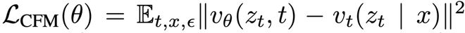 接着,学习由参数θ表示的神经网络v_θ,来拟合这个边缘速度场,其损失函数为: