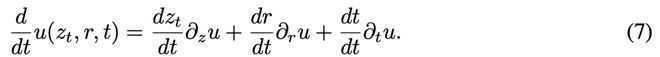 要计算公式(6) 右侧第二项全导数(total derivative),它可以用偏导数展开如下: