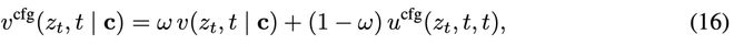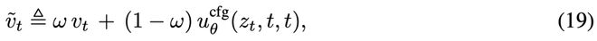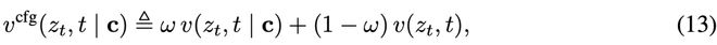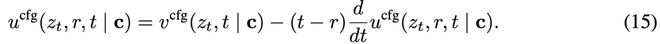 如果ω=1,即纯类别条件引导,则损失函数退化为不含 CFG 的公式(9)。