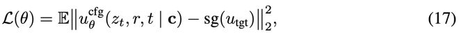 其中,u_tgt 是通过 MeanFlow 恒等式构造的训练目标: